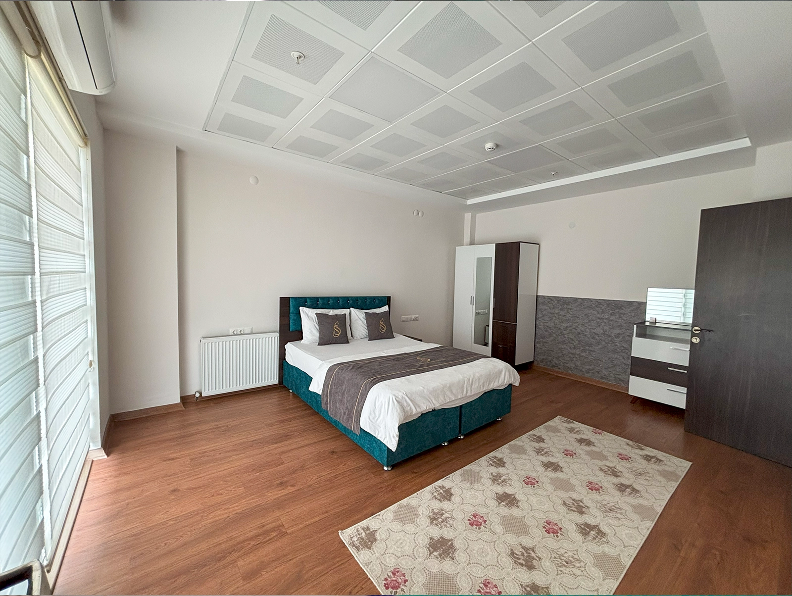 Odamızda 1 ebeveyn yatak odası, 1 çocuk odası ve geniş bir dinlenme salonu yer almaktadır. Ebeveyn banyosunda termal su ile doldurulabilen küvet keyfi sunulmaktadır.